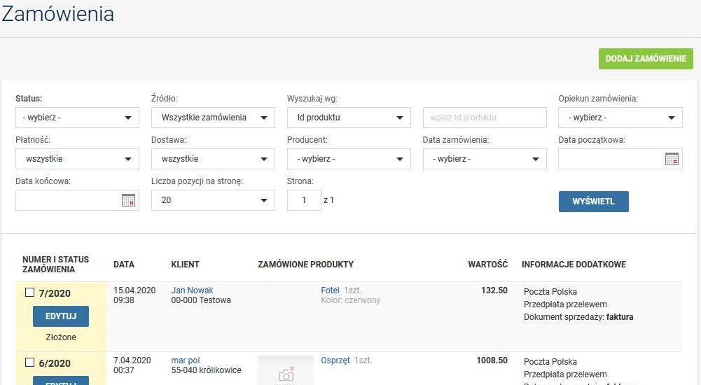 Zamówienia i klienci w multisklepie